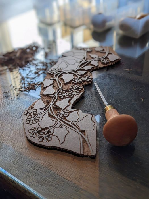 Les plaques sont gravées avec des gouges.