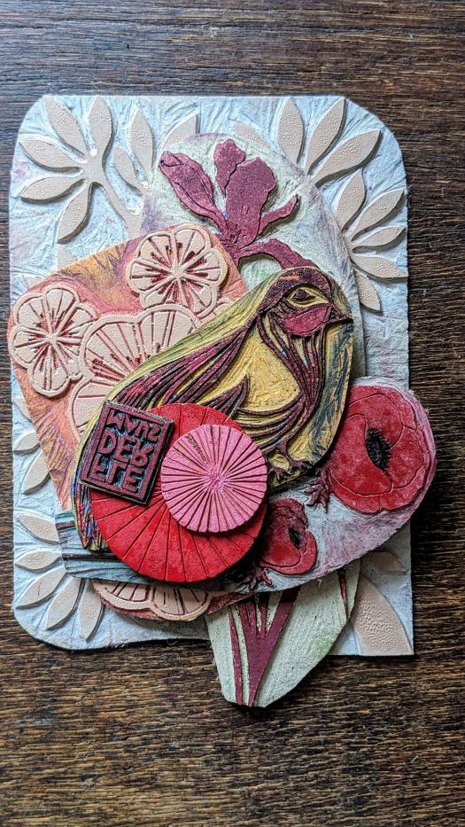 Je joue de l’étonnante variation qu’offre la linogravure : motif répété et estampe toujours singulière pour créer des compositions originales à partir desquelles je fabrique des luminaires uniques.